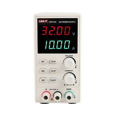 UTP1000系列经济型开关直流电源,拥有四位电压、电流、功率数码屏显示,测量范围广泛,具备10mV/1mA高精度分辨率,同时具备多种保护功能,可稳定可靠的运行,具有高性价比优势,是广泛应用于家电维修及电子产品DIY等场景的理想选择。