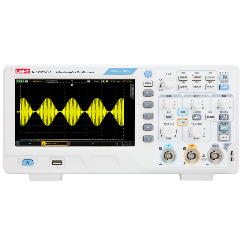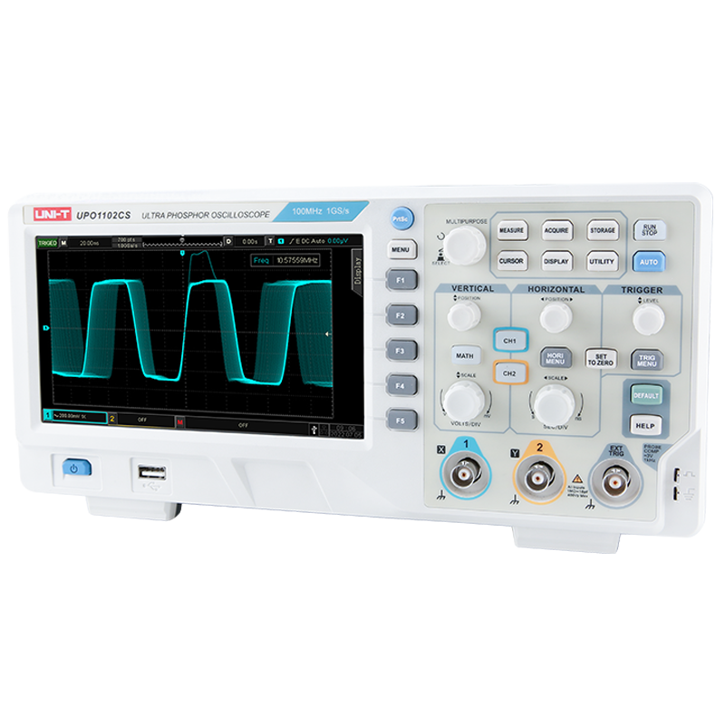 UPO1000CS系列配置200MHz/100MHz两个级别带宽,硬件非交织独立采样每通道1GS/s采样率,标配存储深度高达56Mpts(每通道),快速采集模式下,波形捕获率高达500,000wfms/s,可以准确获取异常事件如视频、抖动、噪声和矮波信号等。