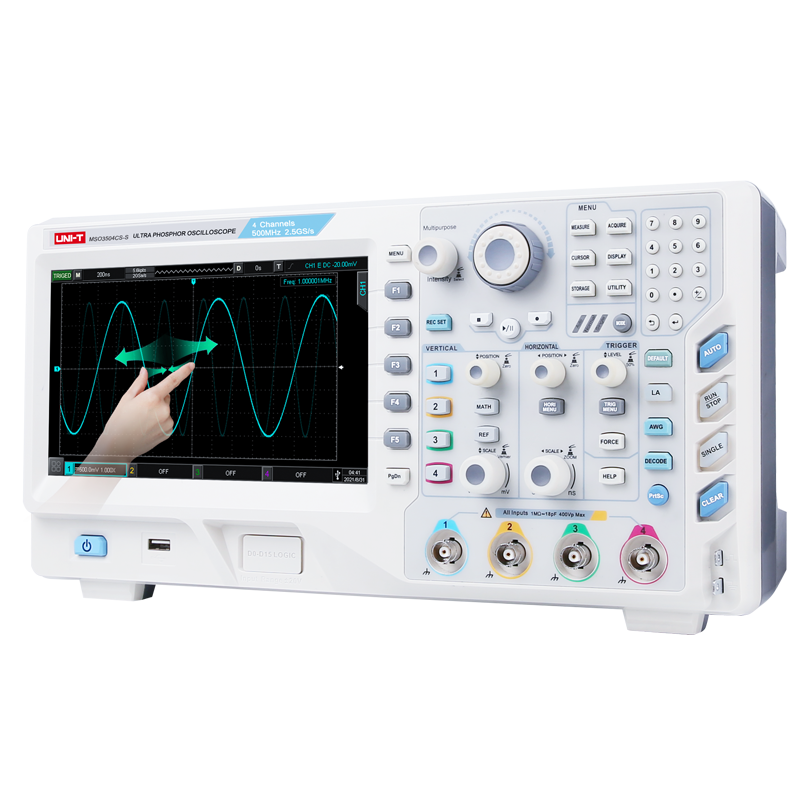 MSO/UPO3000CS系列数字荧光示波器是基于UNI-T独创的 Ultra Phosphor技术的一款多功能、高性能的示波器,实现了易用性、优异的技术指标及众多功能特性的完美结合,可帮助用户更快地完成测试工作。是针对广泛的数字示波器市场包括通信,半导体,计算机,仪器仪表,工业电子,消费电子,汽车电子,现场维修,研发/教育等众多领域的通用设计/调试/测试的需求而设计的示波器。