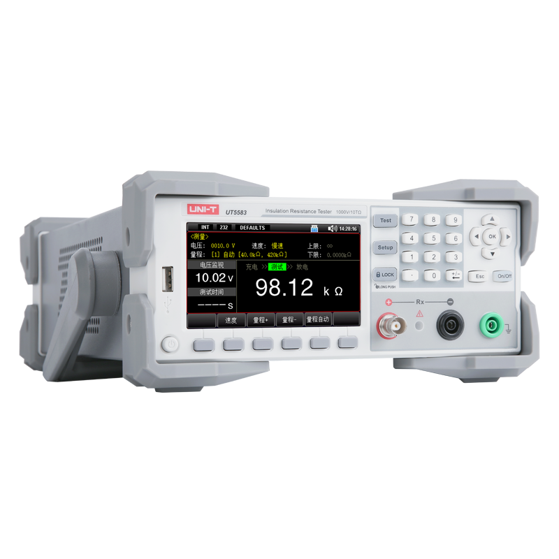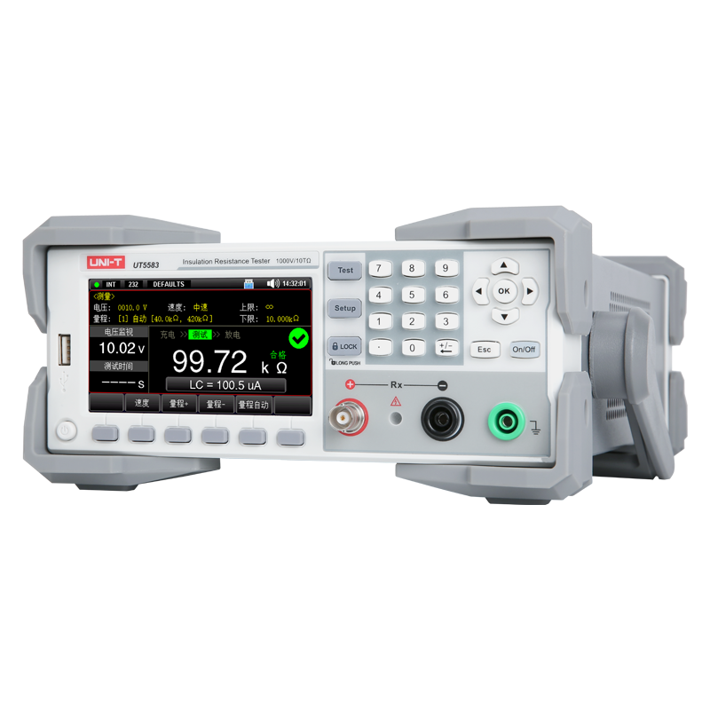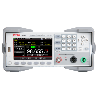UT5583绝缘电阻测试仪采用高性能处理器控制,4.3寸 TFT-LCD显示。输出电压可任意设置1V~1000V,满足大部分测试需求。六量程测试,绝缘电阻测量范围可达10kΩ~10TΩ,高达30ms/次的采样速率,丰富的通讯接口,为自动化生产提供了优选测试解决方案。