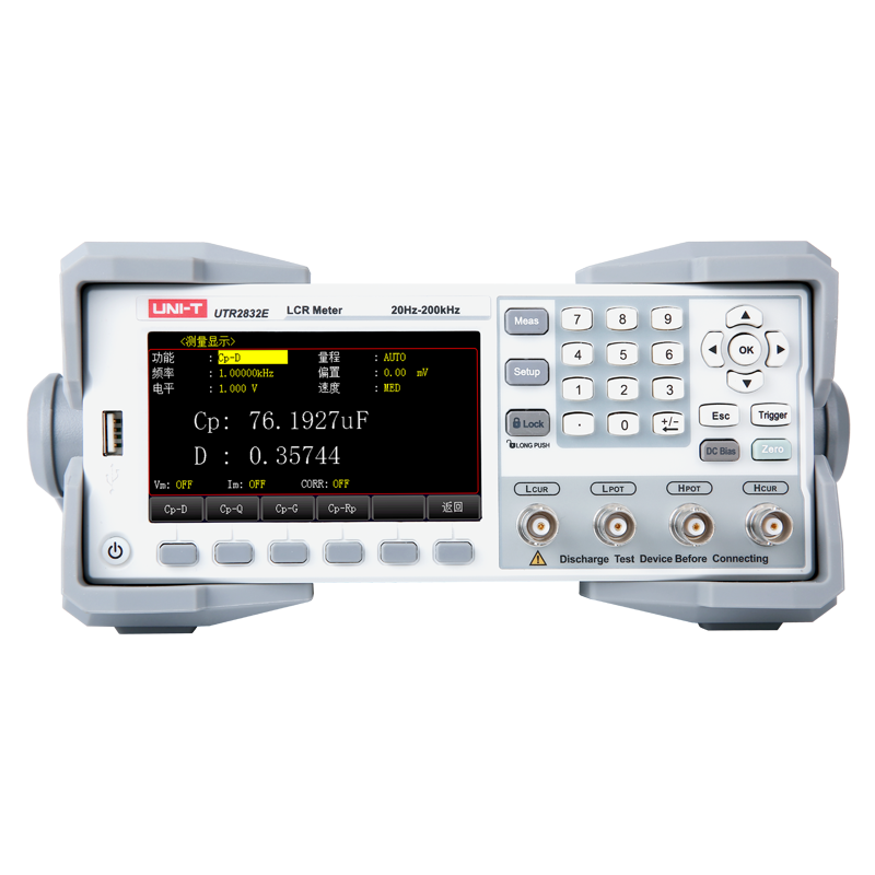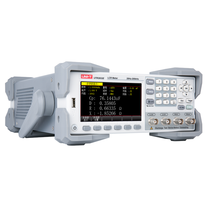 UTR2830E系列LCR数字电桥采用4.3英寸 TFT-LCD显示屏,最高可支持四参数同时显示,测试频率20Hz~300kHz,全数字键盘,搭配实时操作系统,操作更简便,0.05%的基本精度,比较器支持10档分选,测试更可靠。可满足生产线质量保证、进货检验及自动化生产,实验室测试的需求。