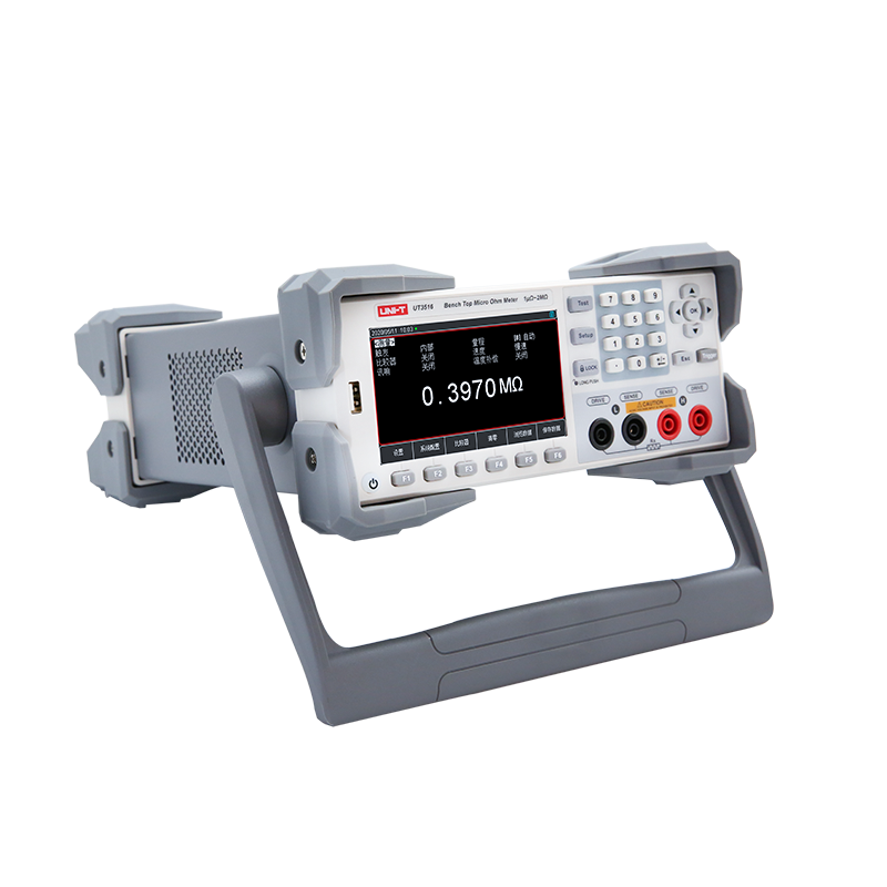 UT3510系列直流电阻测试仪包含UT3513和UT3516两个型号, 其测量电阻范围分别为20kΩ和2MΩ。仪器 4.3英寸大屏幕LCD显示,具备高精度、高分辨率及高速测量特性,拥有0.05%的最高准确度、1uΩ的最小分辨率和60次/秒的最高测量速度。同时标配USB Device、RS-232和Handler通讯接口,支持SCPI和Modbus RTU协议,可与计算机、PLC或WINCE设备进行通讯,高效完成远程控制和数据采集功能。