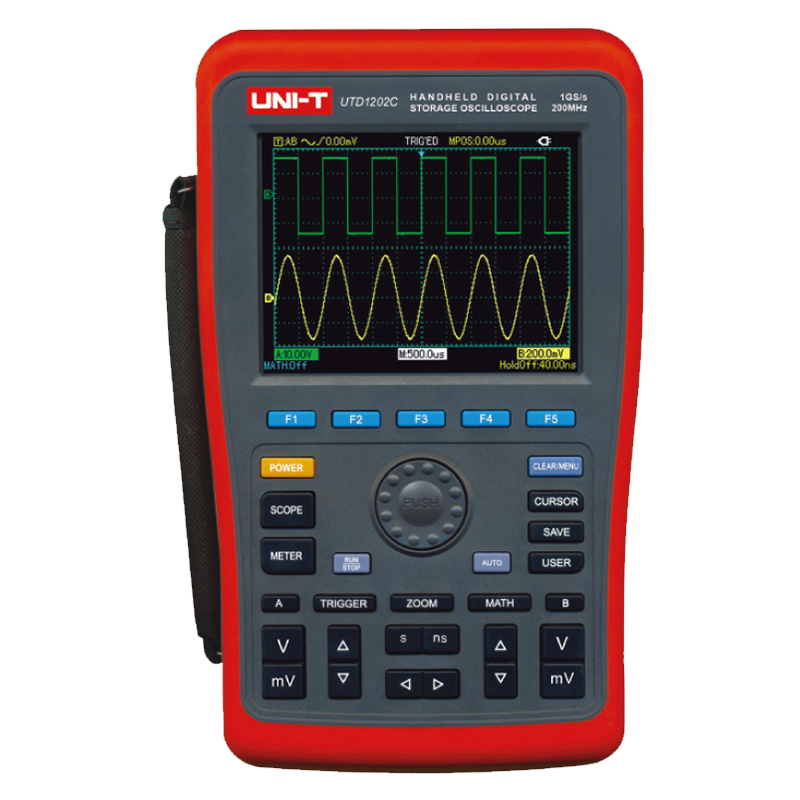 UTD1000C系列手持式数字存储示波器实现了易用性、优异的技术指标及众多功能性的完美结合,可帮助用户更快的完成测试工作。标度和位置旋钮提供了直观的操作,符合传统仪器的使用习惯,用户不必花大量的时间去学习和熟悉数字手持式数字存储示波器的操作,即可熟练使用。