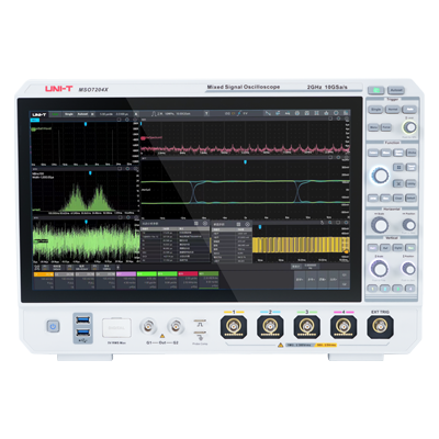 MSO2000X系列混合信号示波器,采样率最高5GSa/s,每通道存储深度可达100Mpts。采用独有的 Ultra Phospho® 3.0技术,波形捕获率高达2,000,000 wfms/s,具有 256 级辉度等级色温显示,先进的数字触发系统,触发灵敏度高,触发精度达到10ps;支持多种高级触发、串行总线触发和解码;支持频谱分析、电源分析、直方图、波形录制、增强分辨率、通过测试、搜索和导航等高级功能和分析模式;具备丰富的测量和数学运算功能。采用了 10.1 英寸电容式触摸屏,支持多种手势实现对波形的常用操作,以及WebServer实现远程操控一款功能全、性能强大的仪器设备。