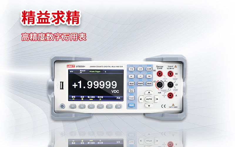 UNI-T系列台式万用表采用经典的外观设计,坚固的结构,搭配高精度稳定的A/D处理器,为您提供精准,安全的测量。最新型号UT805A+台式数字万用表,五位半双显示,测量速率快,显示分辨率高,满足用户多功能、高精度、自动化的测量需求。