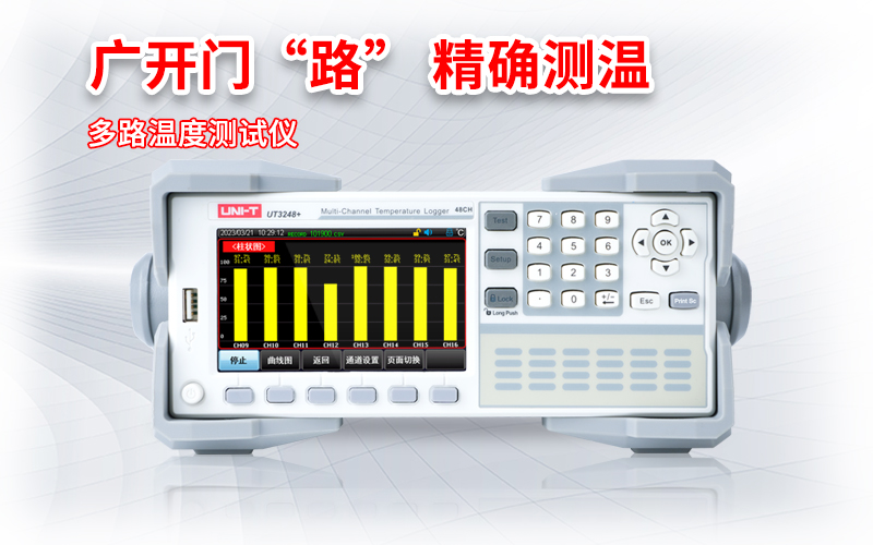 多路温度测试仪将多个传感器的信号接入仪器,用以显示各点温度数据、曲线或柱状图等。仪器可以设定各点温度的报警值,并具有自动报警功能。数据采集后可以用U盘进行存储,或者连接电脑直接记录、生成图表,并进行分析。优利德提供UT3200系列多路温度测试仪温度范围-200℃~1800℃,K型热电偶测试线测温范围-20~200℃。因此,我们在选型时需要根据被测物的应用需求选择合适的热电偶测试线。